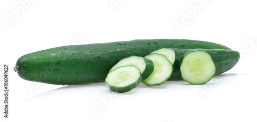 Japanese cucumber Water drops on a white background.