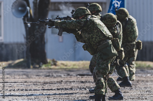 銃を構える自衛官(Japanese soldier holding tha rifle)