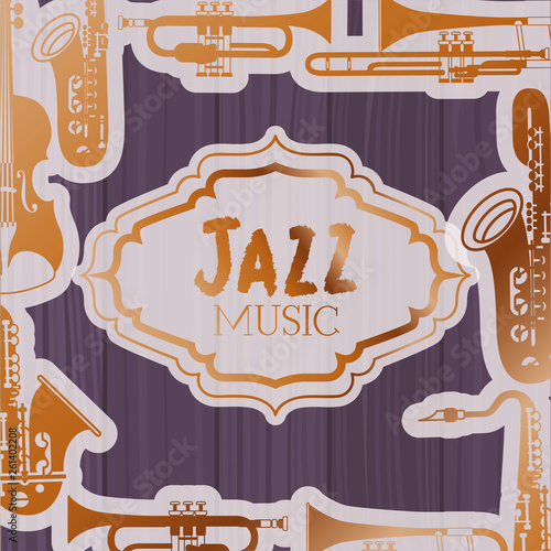 jazz day frame with instruments and wooden background