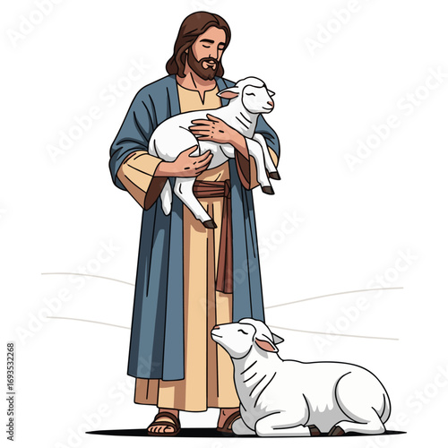 Jesus With Two Lambs, bible story