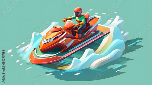 Jet Ski isometric Cartoon 3D Colorful