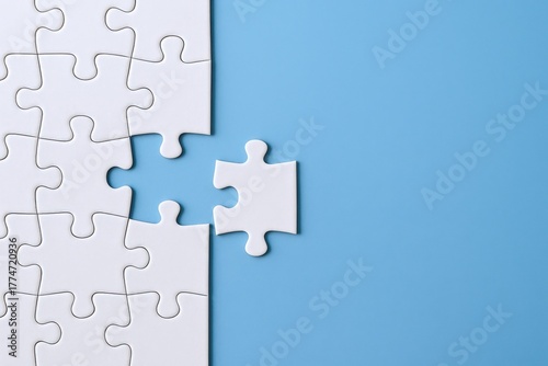 Jigsaw Puzzle Pieces on Blue Background, Symbolizing Strategy, Solutions, and Problem-Solving, Copy Space