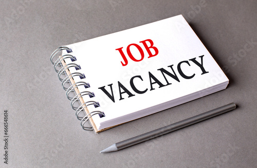 JOB VACANCY word on notebook on grey background