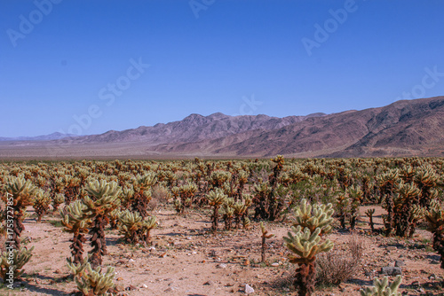 Joshua Tree National Park Landscape Mojave Desert Scenery with Iconic Joshua Trees, Blue Sky, Rocks, and Arid Wilderness, California Nature Travel Background