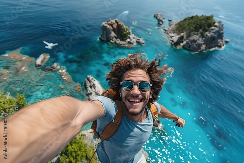Joyful Adventure: Capturing the Thrill of Nature's Beauty from a Cliffside