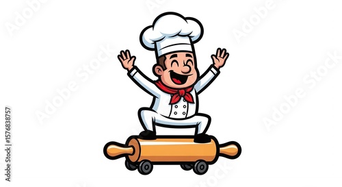 Joyful Chef Rolling on a Rolling Pin: A Whimsical Culinary Cartoon