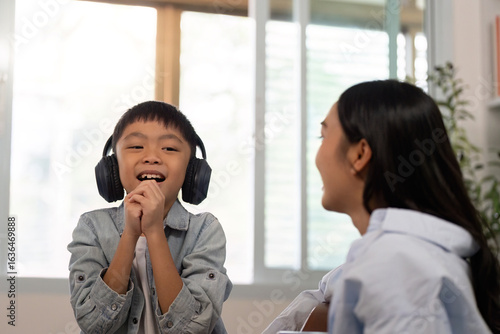 Joyful Child Singing with Headphones at Home