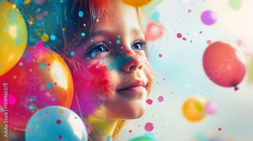 Joyful Child with Colorful Balloons and Confetti