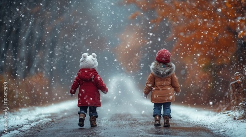Joyful Children Exploring a Snowy Winter Wonderland Together