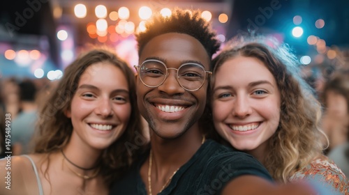 Joyful Friends Capturing Festival Memories Together at Music Event
