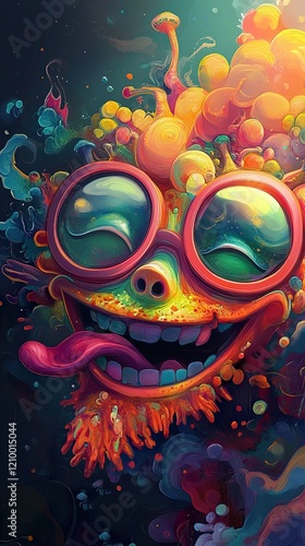 Joyful Psychedelic Creature: Vibrant Colors and Whimsical Smile