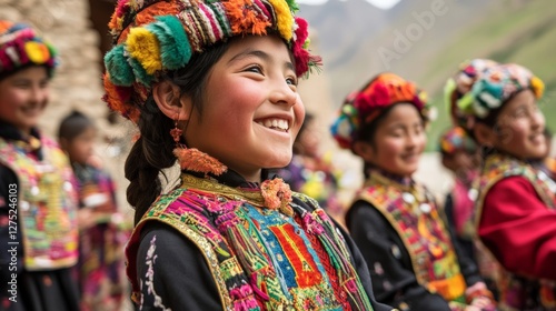 Joyful Young Girl in Traditional Colorful Peruvian Clothing Smiling
