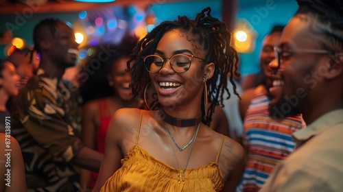 Joyous Black Community Celebrating and Dancing in Vibrant Nightclub