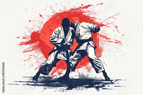 Judo Combat: A Dynamic Clash Under a Red Sun