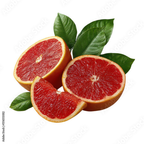 Juicy grapefruit halves and slice isolated on transparent background