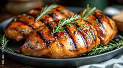 Juicy grilled chicken breasts garnished with fresh herbs create an inviting dish that's perfect for health-conscious individuals looking for delicious and nutritious meal options.