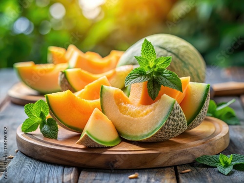Juicy Melon Slices on Rustic Wooden Plate - Summer Fruit Photography