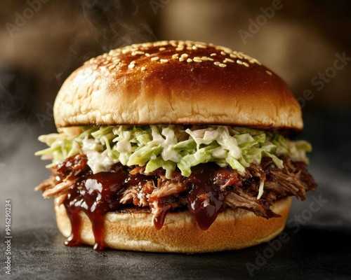 Juicy pulled pork sandwich with coleslaw