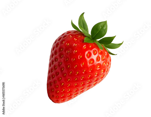 Juicy red strawberry with fresh green leaves for food ads, packaging, or healthy lifestyle visuals