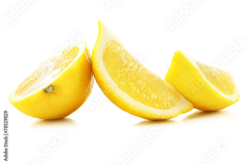 Juicy slices of lemon isolated on white
