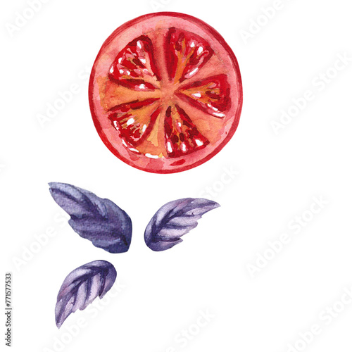 Juicy tomato watercolor illustration isolated on white background for decoration, cards, printing
