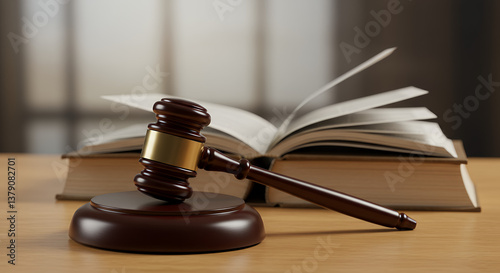 Justice & Knowledge: Gavel on Legal Book - Law, Order, and Wisdom in Session. Court, Legislation, and Study.