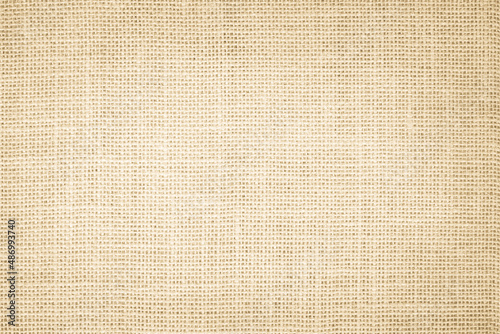 Jute hessian sackcloth burlap canvas woven texture background pattern in light beige cream brown color blank. Natural weaving fiber linen and cotton cloth
