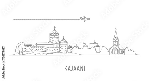Kajaani City Skyline Line Drawing with Airplane