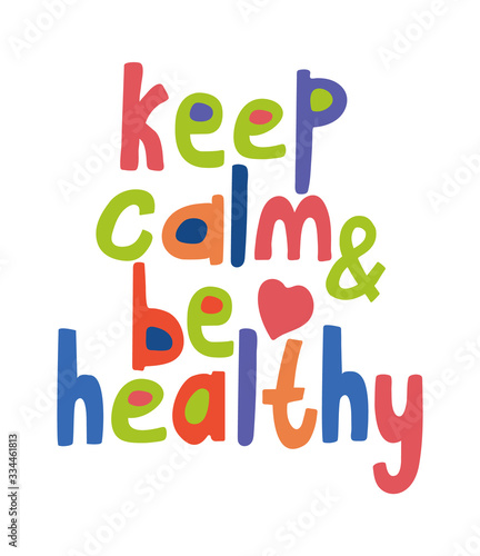 Keep calm and be healthy. Vector hand drawn lettering. Great for posters, cards. Colorful illustration isolated on white background.
