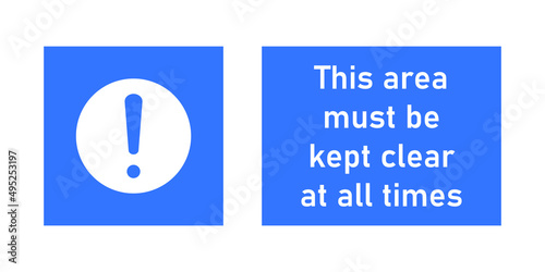 Keep clear info. Fire exit lettering with exclamation mark. Vector