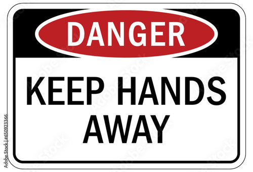 Keep hands clear warning sign and labels keep hands away