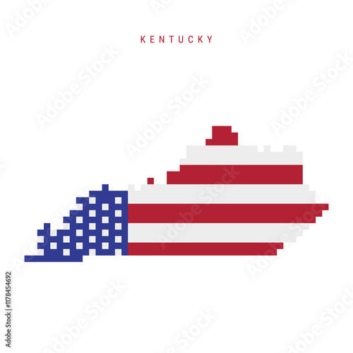 Kentucky pixel flag map icon. 8 bit pixel art map covered with american flag. Flat vector illustration isolated on white background.