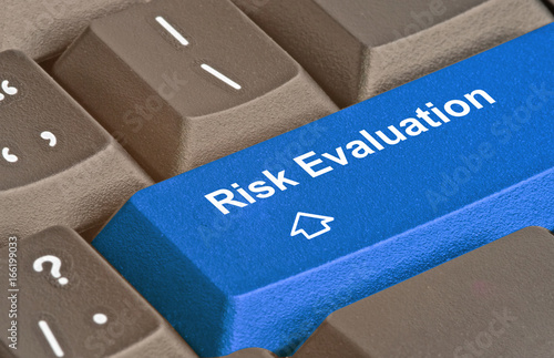 Keyboard with blue key for risk evaluation