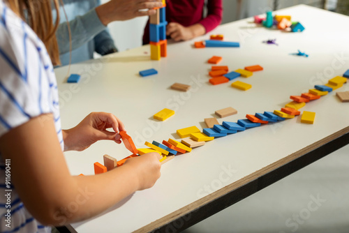 Kid Experimenting With Dominos