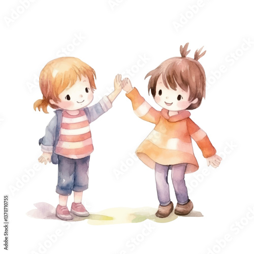 kid high five cute watercolors illustration on white background