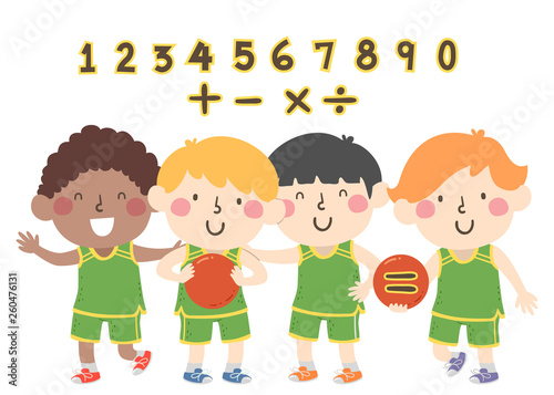 Kids Boys Basketball Numbers Math Illustration