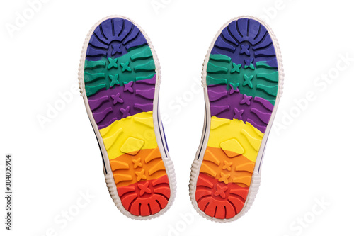 Kids colorful casual shoes sole isolated on white background.
