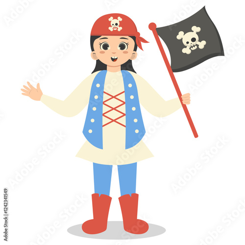 Kids Pirate Illustration with Cartoon Design. Isolated Vector Character.