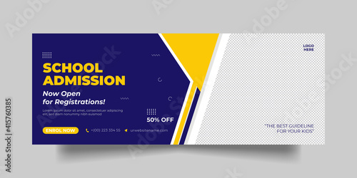 Kids School Admission, Facebook Cover Page, Back to School, Social Media Post and Web Banner Template.