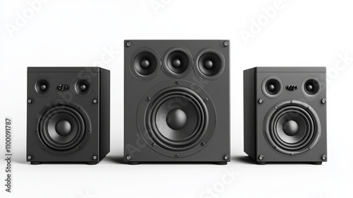 Kit of sound speakers isolated on white background