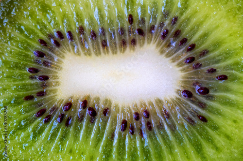 Kiwi slice closeup, texture of cut kiwi_