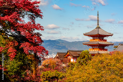 Kiyomizu-dera temple and gardens in autumn, Kyoto, Japan