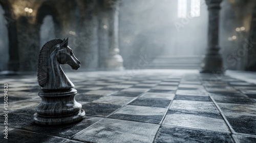 Knight in Ancient Hall: A Chess Piece on a Stone Chessboard