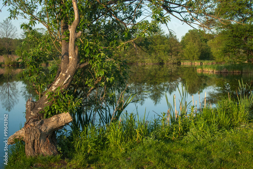 Knorriger Baum an einem See