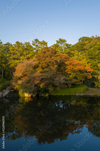 Koko En Garden in Himeji in Asia, Japan, Kansai, Himeji, in summer, on a sunny day.