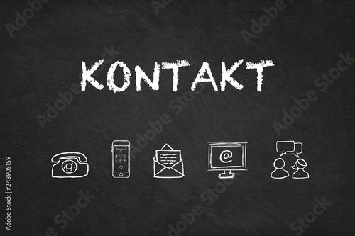 "Kontakt" und Icons mit Kreidetafel Hintergrund