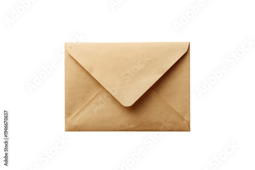 Kraft paper envelope with a sealed flap, centered on a transparent background. Object for mail, message, or invitation concepts