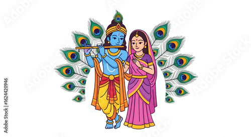 Krishna and Radha with Peacock Feathers: Janmashtami Celebration