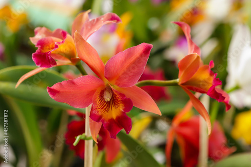 L. Anceps x C. Aurantiaca flower with center focus and rest of image blurred
