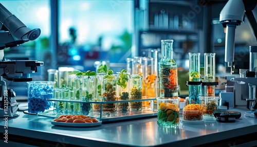 Lab Research Plant Based Science Experiments in Test Tubes Flasks